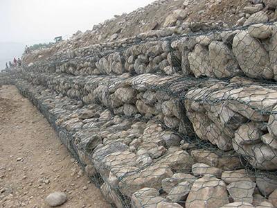 石籠網所運用的低碳鋼絲直徑依據工程規劃要求而不同。一般介于2.0-4.0mm之間,石籠網鋼絲的抗拉強度不少于38kg/m2,金屬鍍層重量一般高于245g/m2,石籠網片的邊際線直徑一般要大于網線直徑。其雙線絞合部分的長度不得小于50mm。